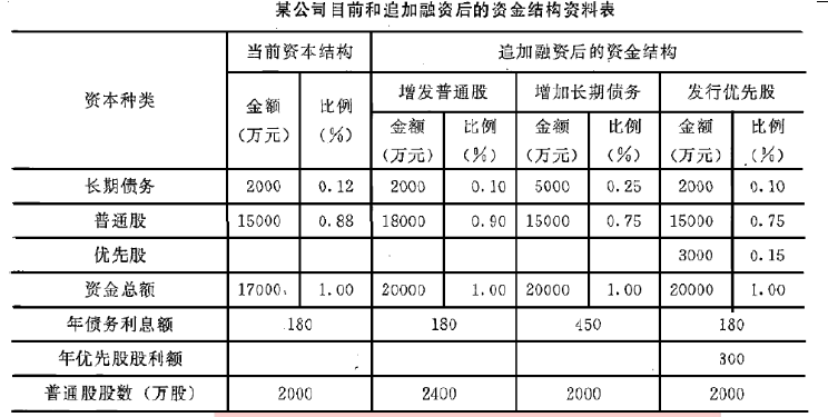 因此,当息税前利润大于2580 万元时,采用增加优先股的方式融资更优,反之,则采用增加普通股的方式融资更优。