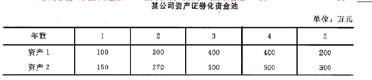 问答题 某公司有两项资产欲打包进行资产证券化出售,各资产预期现金流如下表,投资收益率y=8%,求证券价格应定为多少?