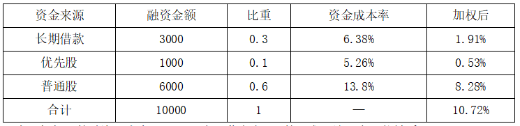 2.采用资本资产定价模型法计算普通股资金成本。社会无风险投资收益3%(长期国债利率),社会平均收益率12%,公司投资风险系数1.2,计划筹资6000万。