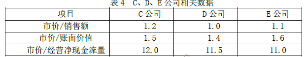 1.C、D、E 公司市价/销售额的平均值=(1.2+1.0+1.1)/3=1.1