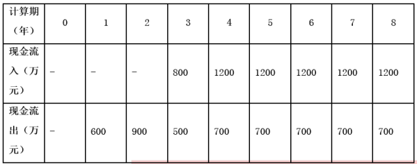 根据数字可知,1~6 年的净现金流量分别为:-600、-900、300、500、500、500,所以静态投资回收期=5+(1500-300-500-500)/500=5.4(年)。
