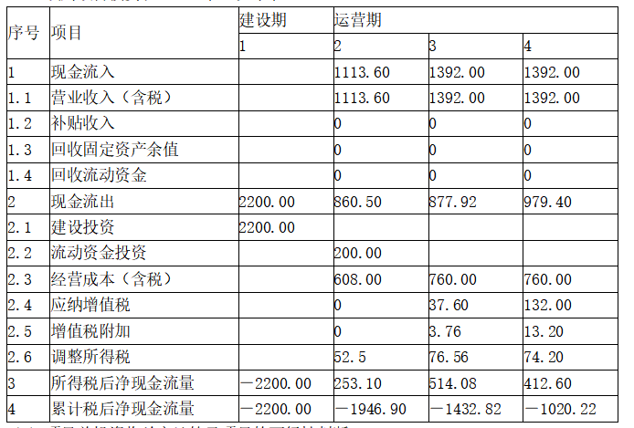 3)运营期第3年息税前利润(EBIT)=(1200-700-190-13.20)万元=296.80(万元)。