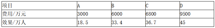 项目D费用效果比9500万元/45万人=211.1元/人>200元/人,不符合指标条件。