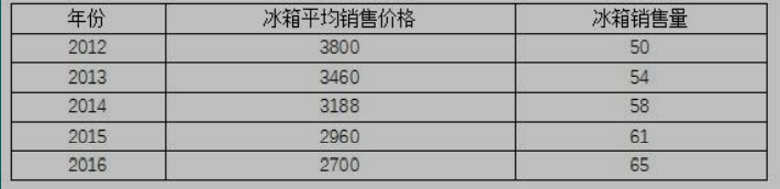 2017年冰箱的价格变化率=(2500-2700)/2700×100%=-7.41%