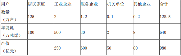 其他行业年消费系数=8万吨标准煤/0.2万户=40万吨标准煤/万户