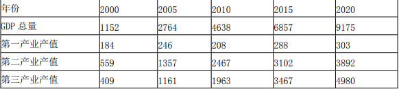 2000年以来,该地区的第一产业比重逐年下降,从16.0%下降到3.3%;
