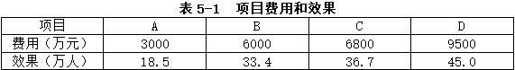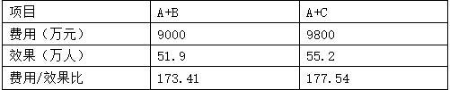 增量费用效果比为:(9800-9000)/(55.2-51.9)=242.42元/人>200元/人。因此应选择A+B组合为最优实施方案。