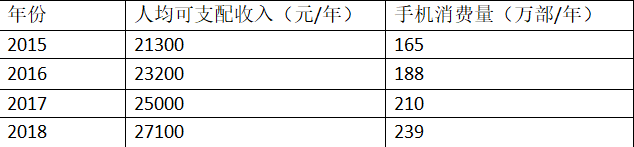 设2019年的手机消费量为X,则