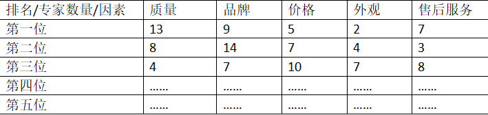 影响手机销售量的五个因素的排序:品牌-质量-价格-售后服务-外观