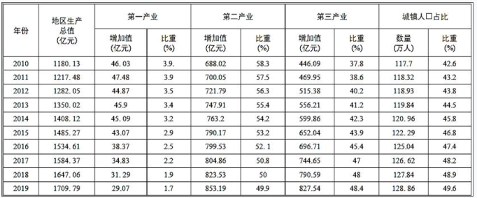 2019年该市处于工业化阶段的后期。