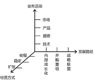 【解析】一体化战略包括纵向一体化战略和横向一体化战略。纵向一体化战略又称垂直一体化战略,它是将企业生产的上下游组合起来一起发展的战略。如手机研发公司向下延伸到手机制造生产,向上延伸到手机生态环境的维护与App的开发。纵向一体化战略按延伸方向的不同,又可进一步分为后向一体化与前向一体化战略;横向一体化战略又称水平一体化战略,是企业为了扩大生产规模,降低生产成本,巩固企业市场地位,提高综合竞争力而与同行业的企业联合的一种战略,如大型房地产企业为了增强在某一城市的综合竞争力与影响力而兼并一些地方的小型地产公司。