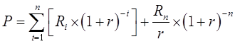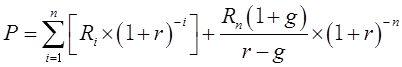 如果在不稳定期结束之后,各年收益率保持稳定增长,假设从(n+1)年起的后段,企业预期年收益按固定比率g增长,则分段法的公式可写成: