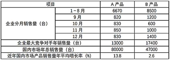 1.A产品的2023年总销量=6670+820+830+850+830=10000(台)。