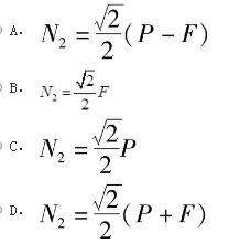 单选题 均质圆柱体重P,直径为D,置于两光滑的斜面上。设有图示方向力F作用,当圆柱不移动时,接触面2处的约束力大小为(