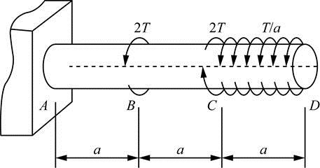 单选题 圆轴,B、C截面处作用有集中转矩,CD段作用有均匀分布的转矩T/a,下面四个扭矩图中正确的是( )。