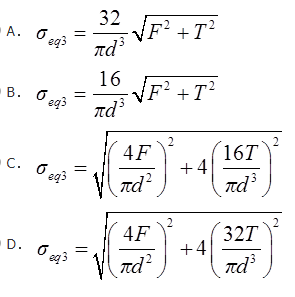 单选题 图示直径为d的圆轴,承受轴向拉力F和扭矩T。按第三强度理论,截面危险的相当应力σeq3为( )。