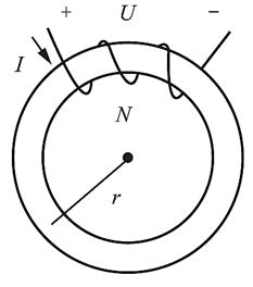 图中,中心环线半径为r的铁心环路上绕有N匝线圈,线圈上流通的电流为I,令此时环路上的磁场强度H处处相等,则H应为( )。