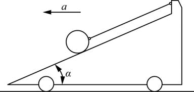 质量为m的小球,放在倾角为α的光滑面上,并用平行于斜面的软绳将小球固定在图示位置,如斜面与小球均以a的加速度向左运动,则小球受到斜面的约束力N应为( )。