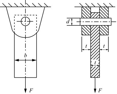 单选题 如图所示,钢板用钢轴连接在铰支座上,下端受轴向拉力F,已知钢板和钢轴的许用挤压应力均为[σbs],则钢轴的合理直