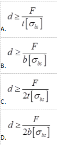 单选题 如图所示,钢板用钢轴连接在铰支座上,下端受轴向拉力F,已知钢板和钢轴的许用挤压应力均为[σbs],则钢轴的合理直径d是( )。