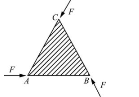 图示等边三角板ABC,边长为a,沿其边缘作用大小均为F的力,方向如图所示。则此力系简化为( )