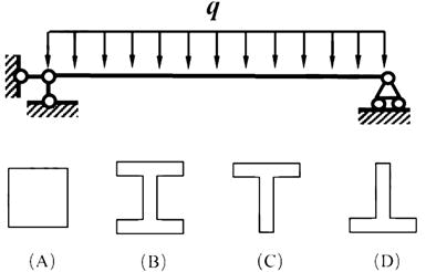 梁的材料为铸铁,在图示四种面积相等的截面中,按强度考虑,承载能力最大的是( )。