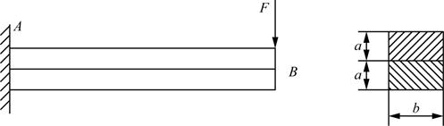 悬臂梁AB由两根相同的矩形截面杆叠合而成,接触面之间无摩擦。假设两杆的弯曲变形相同,在力F作用下梁的B截面挠度为fB。若