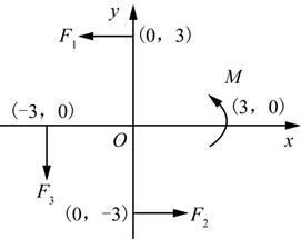 在图示平面力系中,已知:F1=10N,F2=40N,F3=40N,M=30N·m。则该力系向O点简化的结果为(  )。