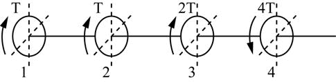 图示等截面圆轴上装有四个皮带轮,将3轮与4轮对调后,圆轴的最大扭转切应力是原来的(  )。