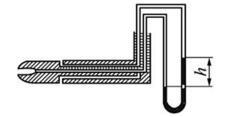 如图所示,采用毕托管测量空气的流速,测量介质用水,现改为密度为水的0.8倍的酒精,流速不变,则比压计读数h变为原来的( )倍。