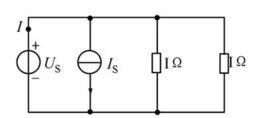 在图所示电路中,已知:US=2V,IS=2A。电流I为( )A。