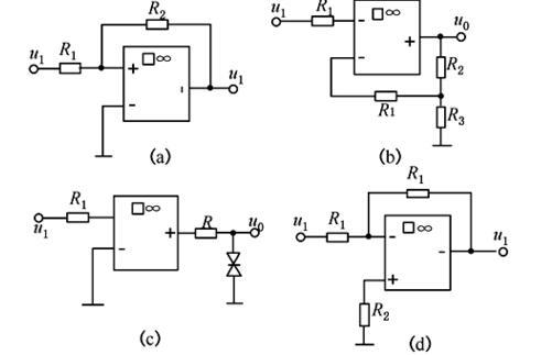 如图所示电路中,符合u+=u-≈0(即虚地)的电路是( )。