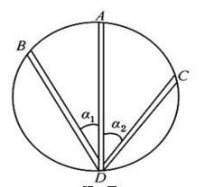 如图,在铅直面内有一圆板刻有三道光滑细槽AD、BD、CD,AD槽沿铅直方向,长为圆板直径,现有三个质量相等的小球在重力作用下自静止开始同时自A、B、C三点沿槽运动,下列四种情形中正确的是( )。