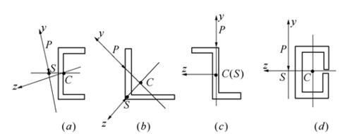 四种不同截面的悬臂粱,在自由端的受力方向如图所示。C为形心,S为弯曲中心,则可以直接应用