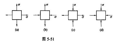 单项选择题 在图5-51所示四种应力状态中,关于应力圆具有相同圆心位置和相同半径值,正确答案为( )。