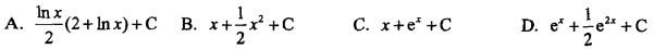 单项选择题 设f'(lnx) = 1 + x,则f(x)等于( )。