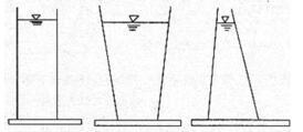 如图所示,三种容器水深、底面积均相等,水体体积不等,正确的是( )。