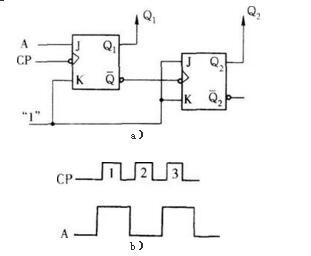 由两个主从型JK触发器组成的逻辑电路如图a)所示,设Q1、Q2的初始态是00,已知输入信号A和脉冲信号CP的波形如图b)