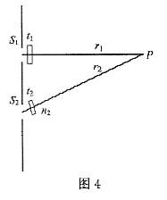 如图4所示,S1和S2是两个相干光源,它们到P点的距离分别为r1和r2。路径S1P垂直穿过一块厚度为t1,折射率为n1的