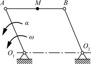 四连杆机构如图所示,已知曲柄O1A长为r,且O1A=O2B,O1O2=AB=2b,角速度为ω、角加速度为α,则杆AB的中