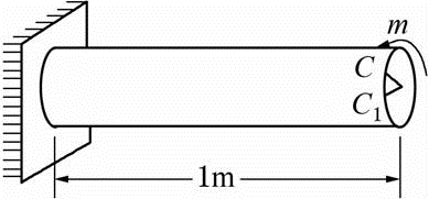 所示当外力偶矩m作用在图示等直圆轴自由端时,自由端截面上的C点转动至C1处,且CC1=1.5mm,已知圆轴材料的剪切弹性模量G=8×10^4MPa,则轴内最大剪应力大小为( )MPa。