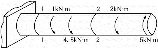 左端固定的直杆受扭转力偶作用,在截面1—1和2—2处的扭矩为( )。