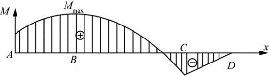 梁的弯矩图如图,最大值在B截面,在梁的A、B、C、D四个截面中,剪力为零的截面是( )。