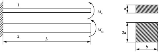 两根矩形截面悬臂梁,弹性模量均为E,横截面尺寸如图,两梁的载荷均为作用在自由端的集中力偶,已知两梁的最大挠度相同,则集中