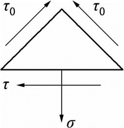 等腰直角三角形单元体,已知两直角边表示的截面上只有剪应力,且等于τ0,则底边表示的截面上的正应力σ和剪应力τ分别为( )