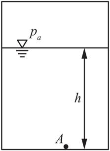 密闭水箱如图,已知水深h=1m,自由面上的压强p0=90kN/m2,当地大气压强为pa=101kN/m2,则水箱底部A点