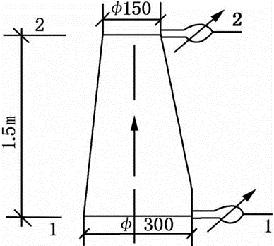 有一垂直放置的渐缩管,内径由d1=300mm渐缩至d2=150mm,水从下而上自粗管流入细管。测得水在粗管1—1断面和细