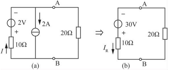 两电路相互等效,由图(b)可知,流经10Ω电阻的电流IR=1A,由此可求得流经图(a)电路中10Ω电阻的电流I等于( )