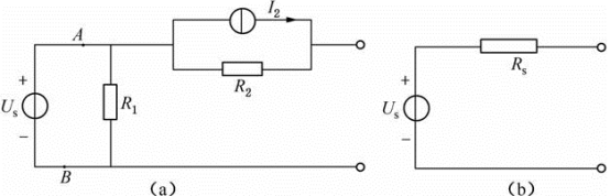 图(a)电路按戴维南定理等效图(b)所示电压器时,计算Rs的正确算式是( )。