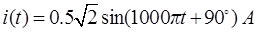 已知交流电流i(t)的周期T=1ms,有效值I=0.5,t=0时,,则它的时间函数描述形式是( )。